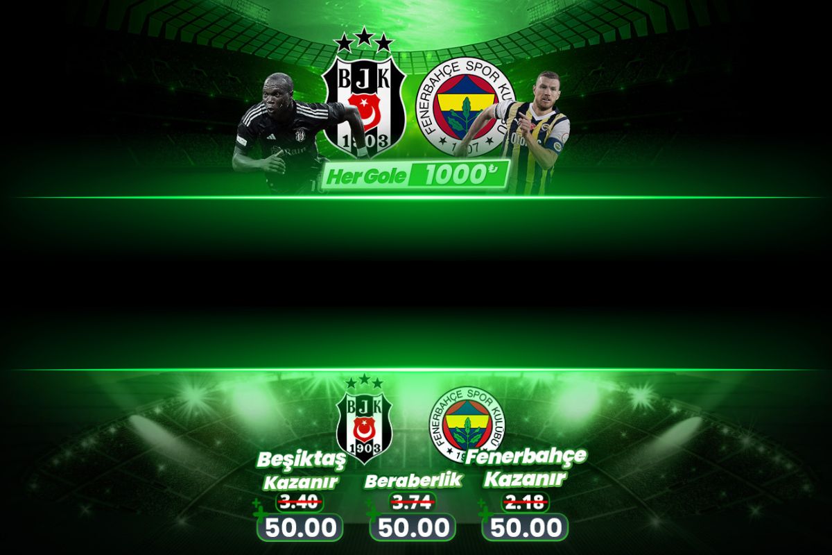 Beşiktaş Fenerbahçe derbisi için nefesler tutuldu, derbi gününe az kaldı. Bets10 derbi haftasında yine beklenildiği gibi farklı bir marka olduğunu gösterdi ve Beşiktaş kazanır, Beraberlik, Fenerbahçe Kazanır, 2.5 Gol Üstü bahislerine 50 oran verdi. Sen de kazananlar arasında yer almak istiyorsan hemen gel ve görsele ya da görselin altındaki “50 ORAN İÇİN TIKLA” butonuna tıkla.